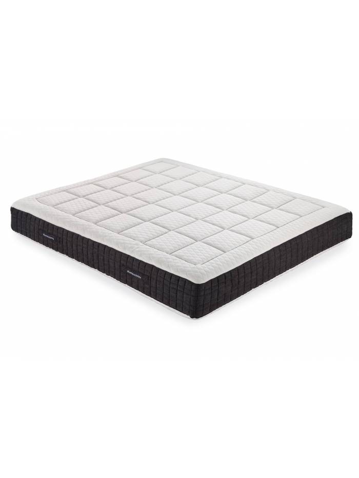 El colchón incorpora materiales de alta calidad como algodón, lana, seda y fibra de microclima, junto con espumas técnicas como Adaptech Foam, creando una acogida confortable y progresiva. Su estructura de látex favorece una ventilación constante, manteniendo una temperatura estable durante el descanso y evitando la acumulación de humedad.